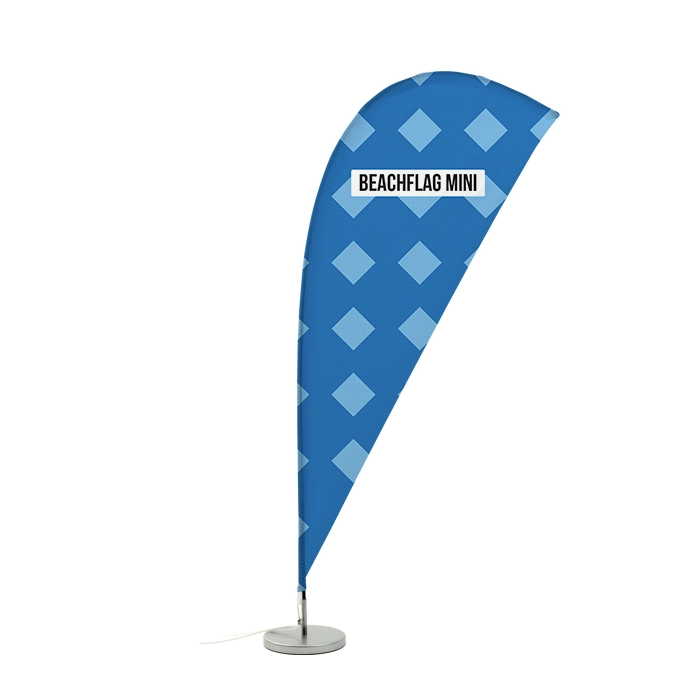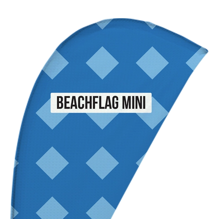 De mini beachflag is vervaardigd uit Flag Longlife en heeft dezelfde druppelvorm als de dropflag. Dit ontwerp biedt een groter oppervlak voor jouw promotieboodschap. Maak gebruik van ons template om jouw ontwerp te creëren voor een perfect eindresultaat.