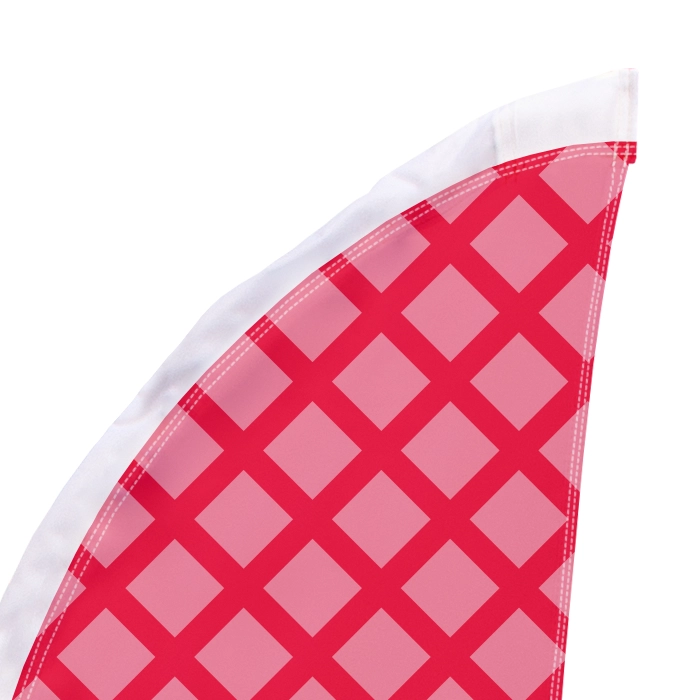 De dropflag van jouw klant wordt vervaardigd uit Flag Longlife. Dit sterke polyester doek heeft een grove structuur en is licht geperforeerd, waardoor het nauwelijks rafelt. Zomen is niet nodig, en dankzij de structuur zijn de vlaggen zelfs bij lage windkracht goed zichtbaar en leesbaar.