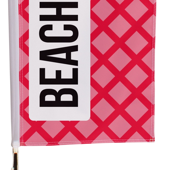 Onze beachflags zijn gemaakt van drie hoogwaardige stoffen: Flag, Flag PET en Longlife. Flag is de standaard vlaggenstof, terwijl Flag PET een duurzaam alternatief is, gemaakt van 100% gerecyclede petflessen. Longlife is een extra sterke variant die minder snel rafelt dankzij een unieke structuur. Voor wie duurzaamheid belangrijk is, biedt Flag PET een milieuvriendelijke optie die weersbestendig is en tegen een stootje kan.