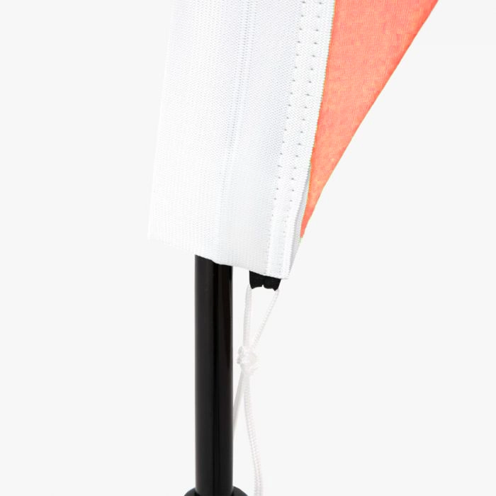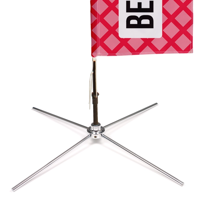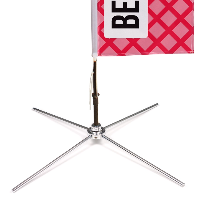Wij leveren de mini beachflag met een tunnel en koord onderaan, zodat je deze eenvoudig kunt bevestigen aan de stevige standaard. De zwarte stok en het zilverkleurige voetje zorgen voor een elegante uitstraling en extra stabiliteit, zodat de mini beachflag niet zomaar omvalt.