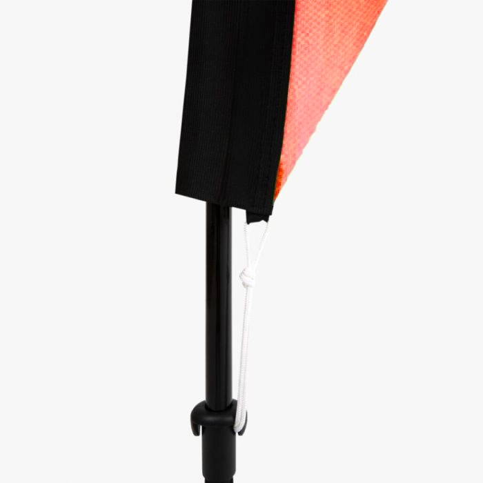 De gepersonaliseerde tunnel wordt gemaakt van hetzelfde materiaal als de vlag, waardoor het ontwerp mooi doorloopt. De elastische band, verkrijgbaar in zwart of wit, maakt de beachflag steviger en verlengt de levensduur. Bovendien is de elastische band voordeliger en duurzamer omdat het minder snijafval genereert.
